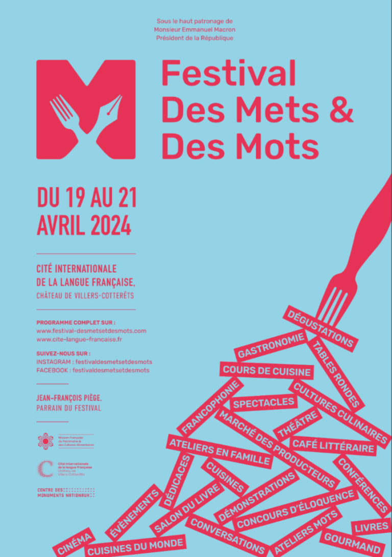 Le Festival Des Mets et des Mots est organisé par la Cité internationale de la langue française, en coproduction avec la Mission Française du patrimoine et des cultures alimentaires.