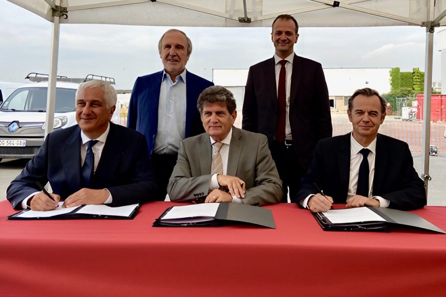 De gauche à droite : Alain TARAVELLA, PDG Altarea, Stéphanie DAUMIN, Maire de Chevilly-Larue & Vice-Présidente du Syndicat mixte de la cité de la gastronomie, Stéphane LAYANI - Président Directeur général du marché international de Rungis-Semmaris