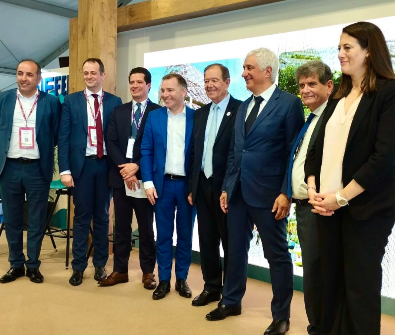 De gauche à droite : Metin YAVUZ , Conseiller départemental du Val-de-Marne et Maire de Vanlenton, Nicolas TRYZNA, Vice-Président du syndicat de la cité de la gastronomie & Vice-Président du Conseil Départemental du Val-de-Marne, Rodrigo CLARE, Directeur de l’immobilier commercial d’Altarea, Olivier CAPITANIO, Président du Conseil Départemental du Val-de-Marne, Patrick OLLIER, Président de la Métropole du Grand-Paris, Stéphane LAYANI, Président Directeur Général de la SEMMARIS, Bruno MARCILLAUD, Maire de Rungis et Président du Syndicat Mixte de la Cité de la gastronomie, Alexandra DUBLANCHE, Vice-Présidente de la Région Ile-de-France chargée de l'attractivité, et du développement économique.